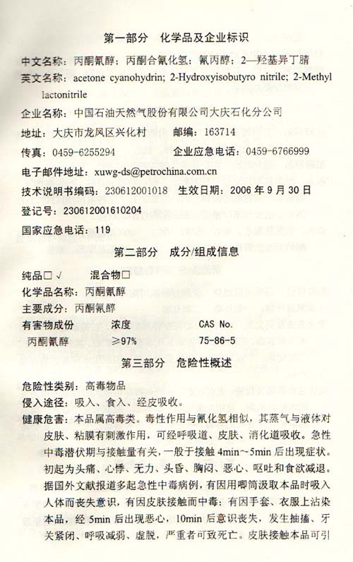 氰醇技术说明